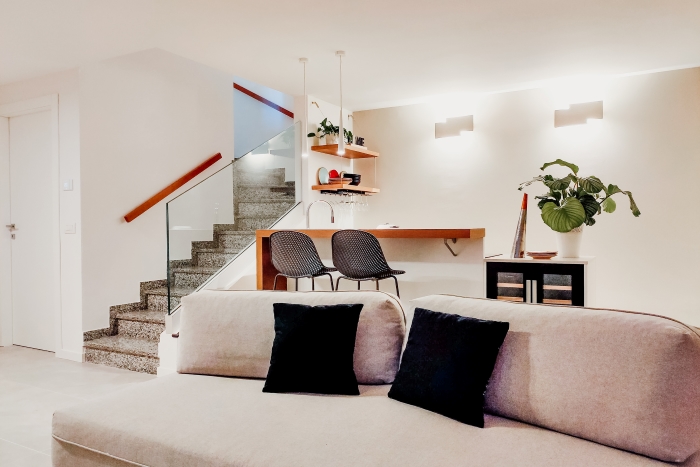 La casa arredata in stile moderno è strutturata su tre piani, piano terra con cucina, living e bagno, primo piano con camere e taverna che da buia è diventata un luogo luminoso e super confortevole, dove godersi momenti di relax in compagnia di amici e di buoni vini!