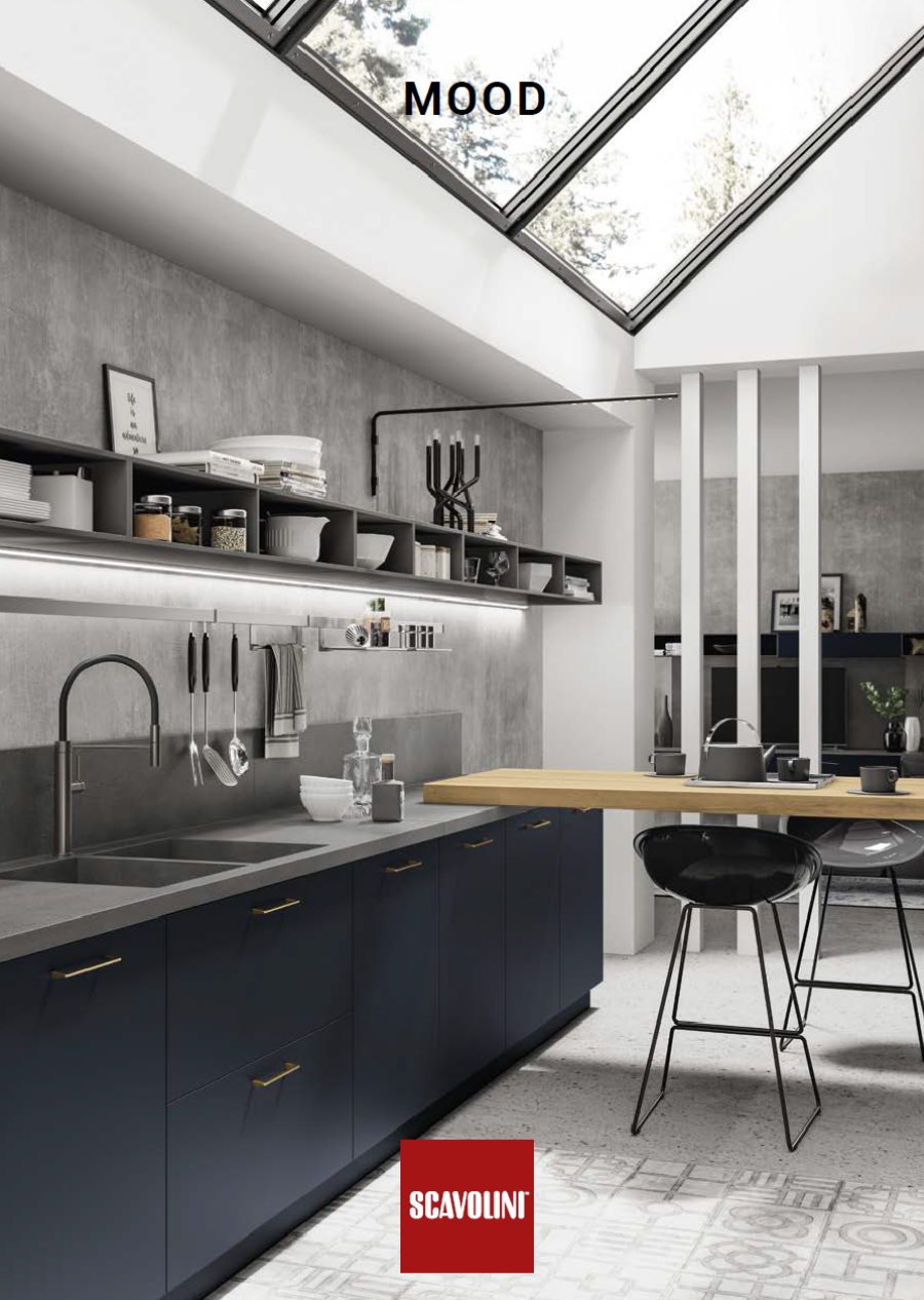 E la cucina Mood Scavolini, dalle linee nette e pulite, risponde proprio a questo principio perché progettata integrando molteplici materiali che creano configurazioni di grande personalità. Ora nuove proposte arricchiscono questo best seller della collezione Scavolini: nuove finiture, materiali e colori, tre inedite maniglie e numerosi articoli proposti per donare alla cucina moderna Mood un interessante appeal ed eleganza, perfetti per ogni tipo di ambiente.”